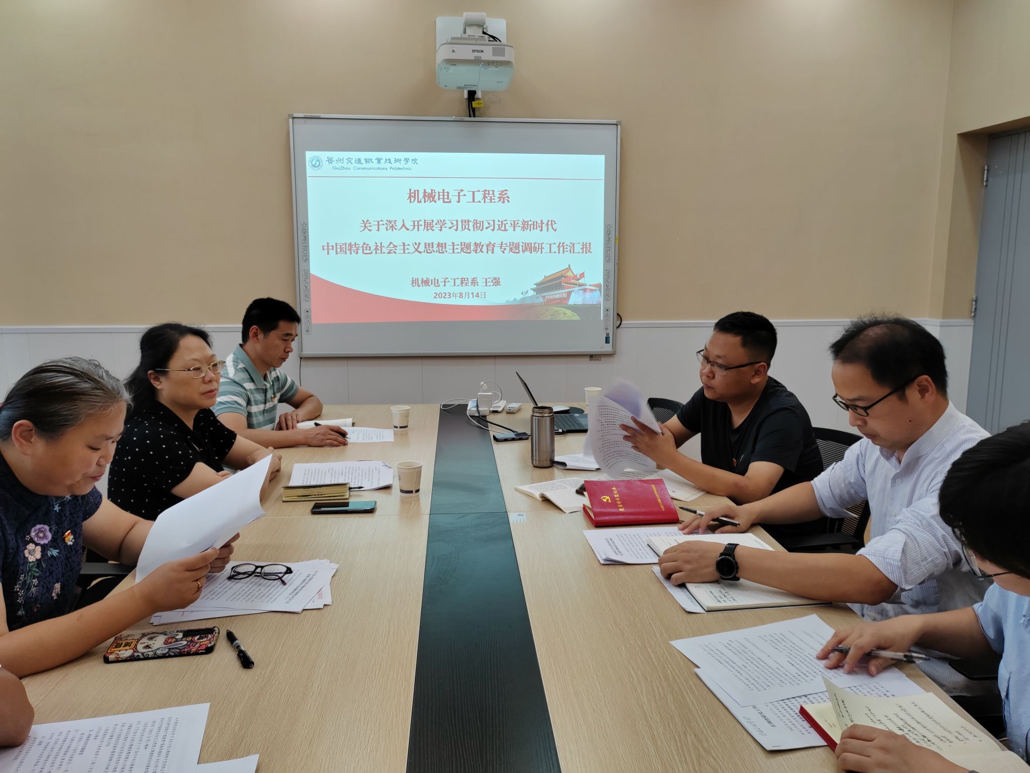 8月14日,机械电子工程系召开主题教育调研成果交流会,学院党委副书记杜娟、主题教育办调研组组长袁景荣、系三级班子参加,系党总支副书记于建委主持。