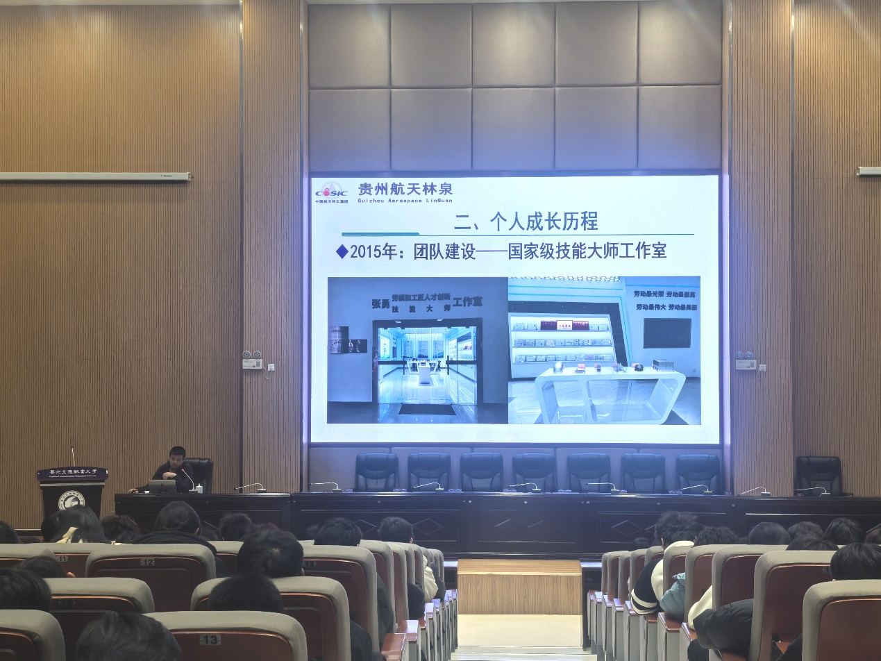 为对接智能制造产业需求,弘扬精益求精工匠精神,12月3日,智能制造学院邀请贵州航天林泉电机有限公司首批全国“大国工匠”培育对象、国家级技能大师工作室领衔人张勇到校开展讲座,学校300余名师生代表参加。