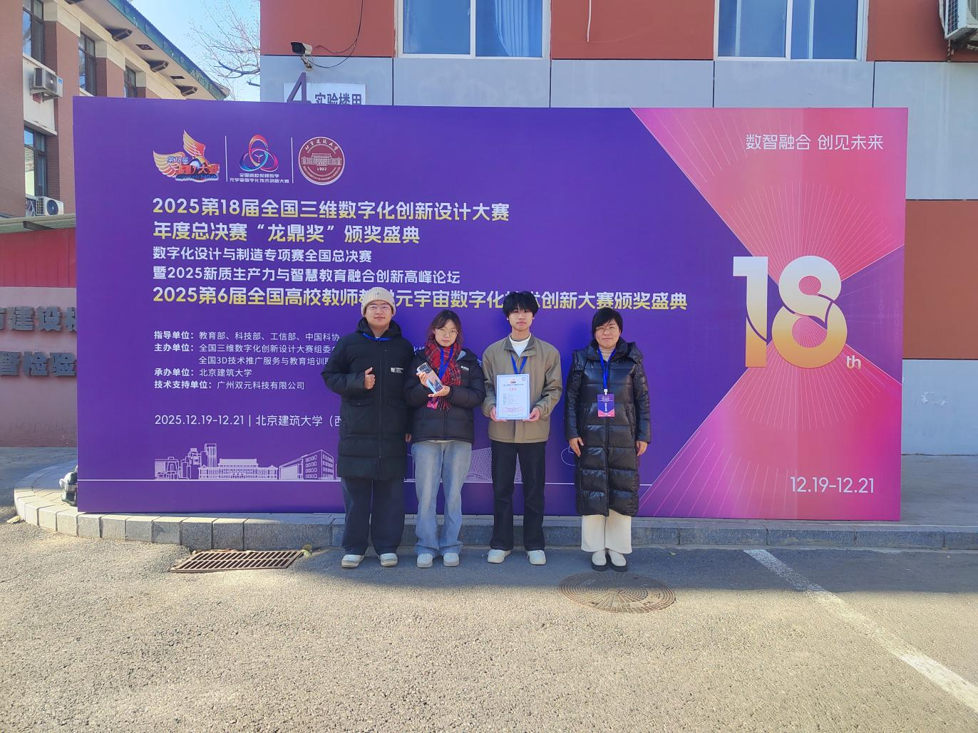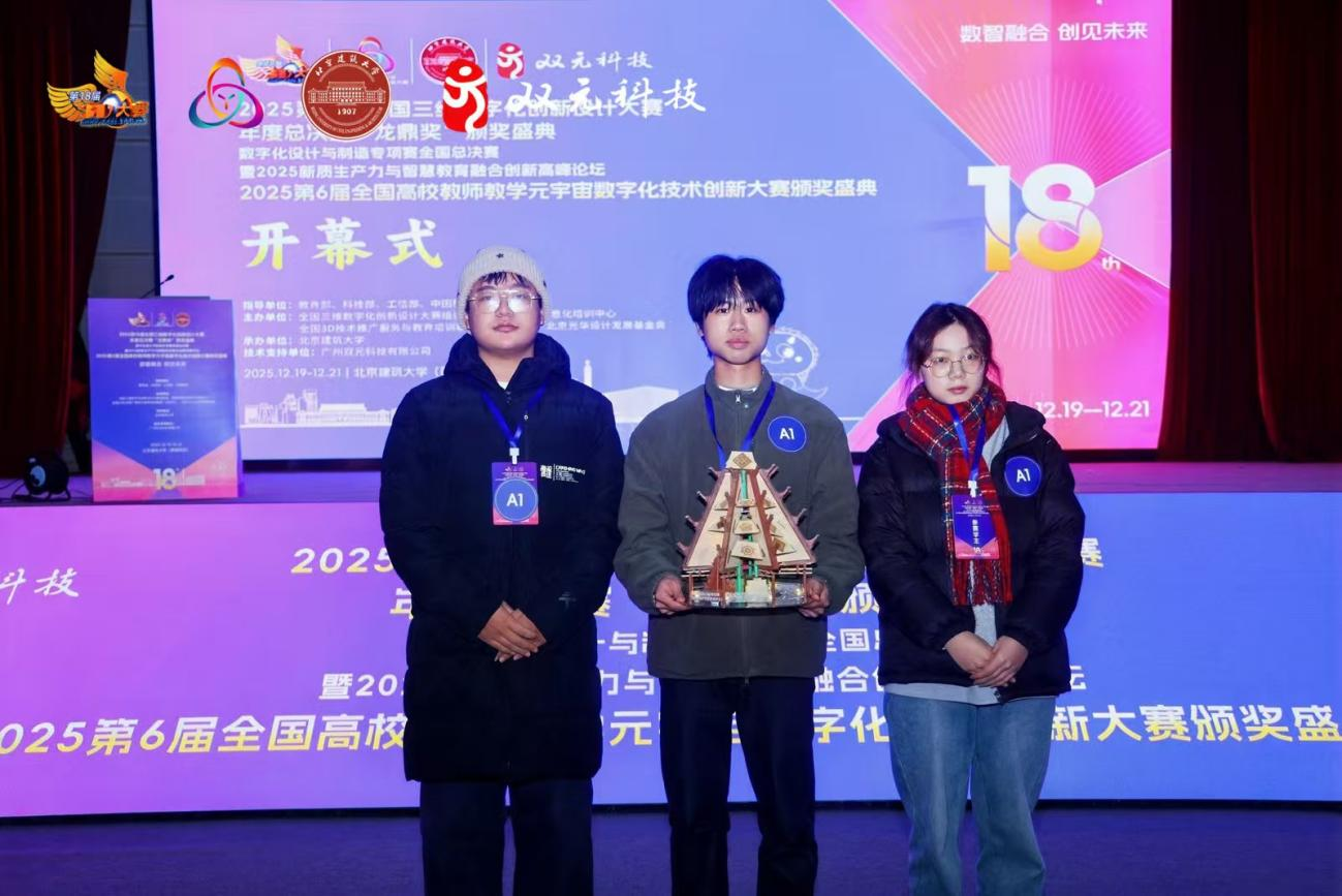 近日,由科技部、教育部等指导,北京建筑大学承办的第18届全国三维数字化创新设计大赛“数字化设计与制造”赛项全国总决赛圆满落幕。我校智能制造学院机械电子工程技术专业42401班张洁洁、安桐辉、李志豪组成的“涨智慧”团队,在谢军华、杨义慧老师指导下,凭借作品《榫卯乾坤 数字传承》从全国189支本科院校参赛队伍中突围,斩获本科组全国一等奖。