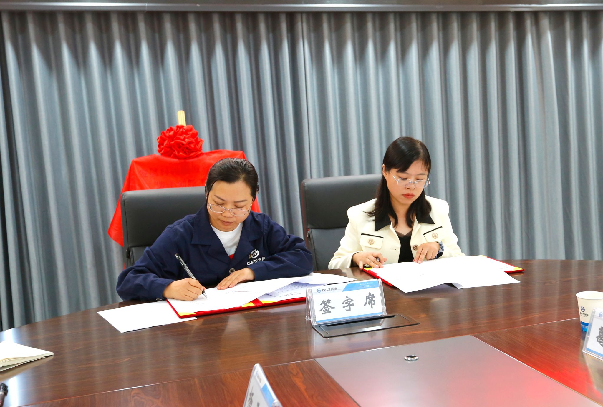 陆萍同杨倩就党支部联建共建进行现场签约。