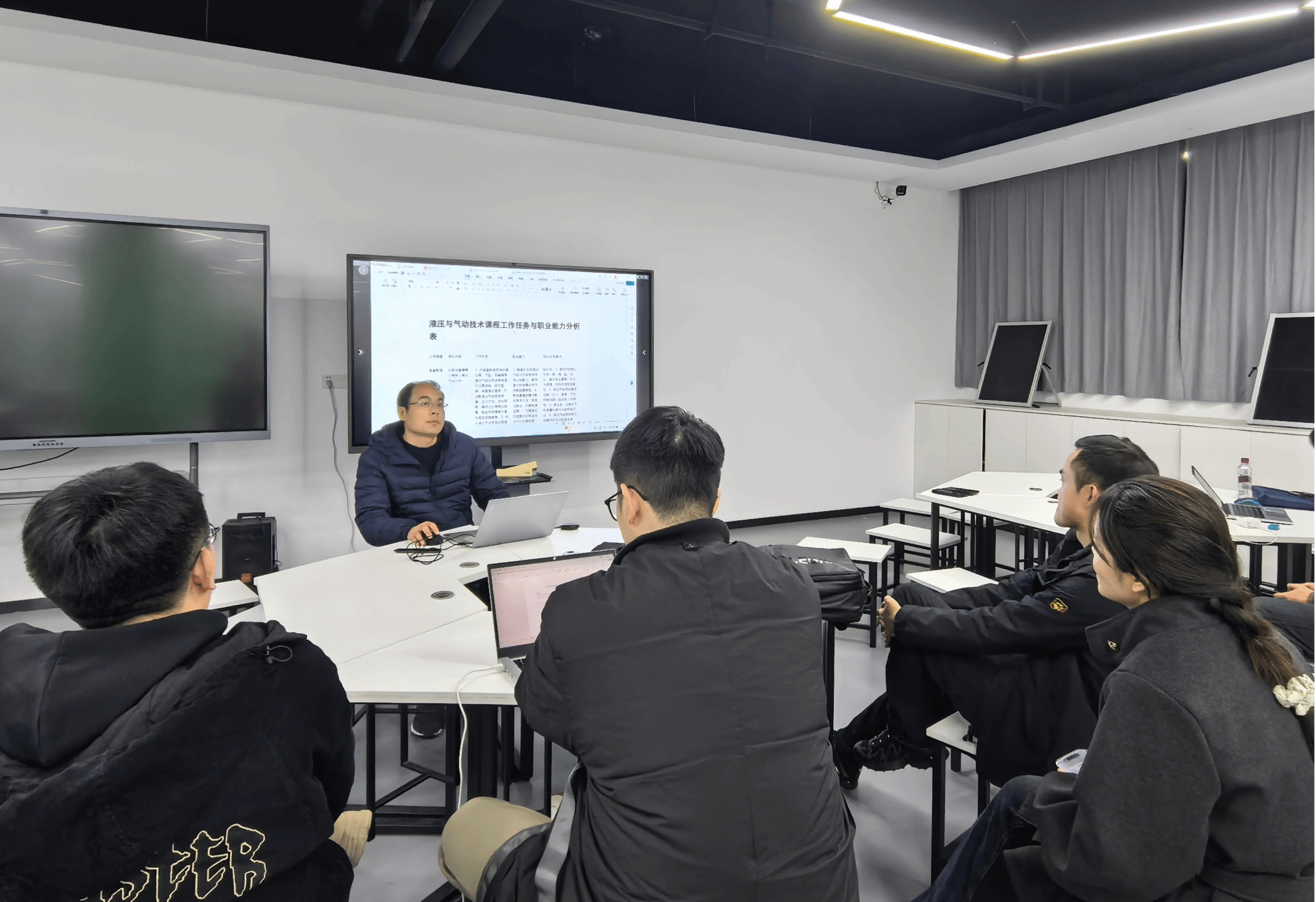 本次培训采用“理论讲授+案例实操+分组研讨”的模式,着重强调学用转化。在考核阶段,组织各课程团队以汇报答辩的形式检验学习成效,围绕所学内容展示课程、岗位能力分析、技术应用思路及教学创新方案。