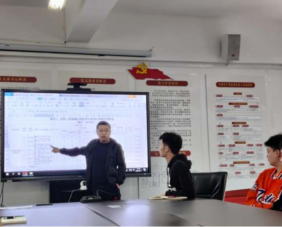方涛介绍了智能工程机械应用技术专业的发展沿革,针对即将到来的2022级学生的课程设置情况与全体教研室教师、学生代表展开讨论,听取学生代表对当前课程安排时间、理论课程占比、实训课内容、行业需求等的建议,逐一讨论每一门课程的授课学期、授课计划、授课师资等学生密切关注的现实问题。