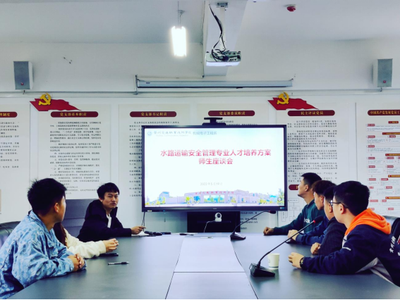 2022年5月19日,航运教研室在党员活动室召开水路运输安全管理专业人才培养方案师生座谈会,航运教研室全体教师、各年级学生代表参加修订会。