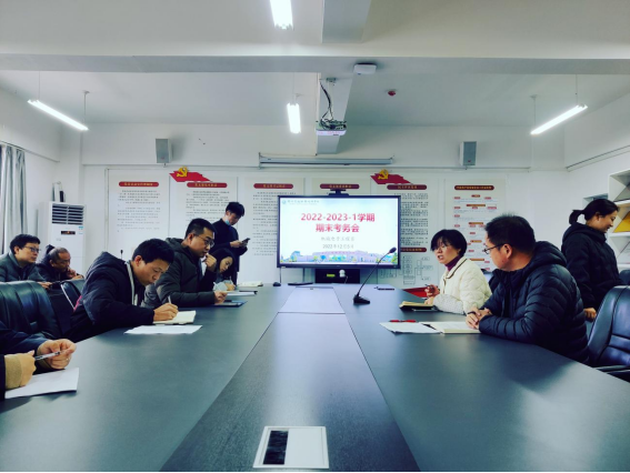 2022年12月5日,机械电子工程系组织全体教师在党员活动室召开2022-2023学年第一学期期末考务会,系副主任彭爱泉主持会议。