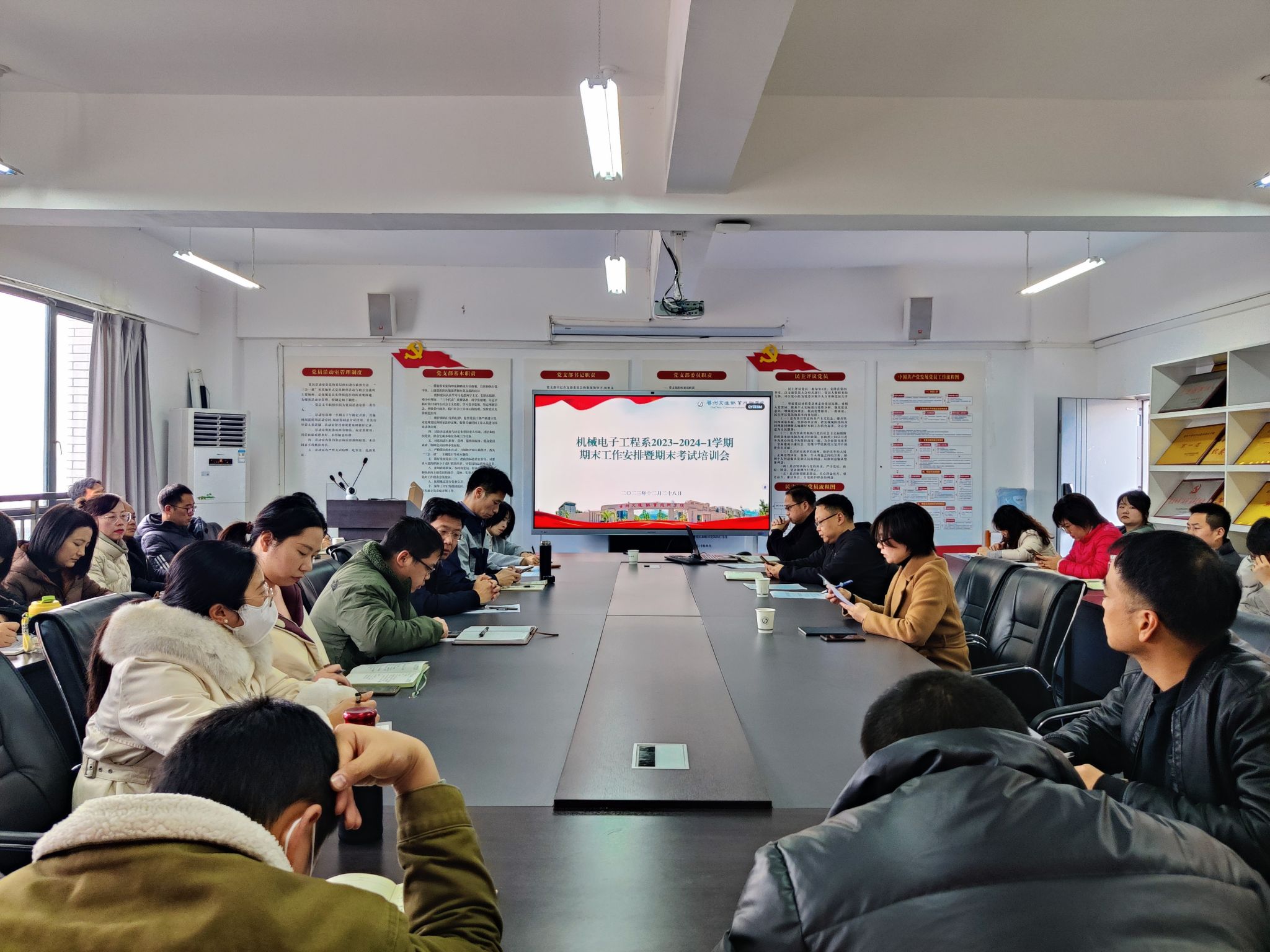 12月28日,机械电子工程系2023-2024-1学期期末工作安排暨期末考试培训会在党员活动室召开,全系教师参加培训。