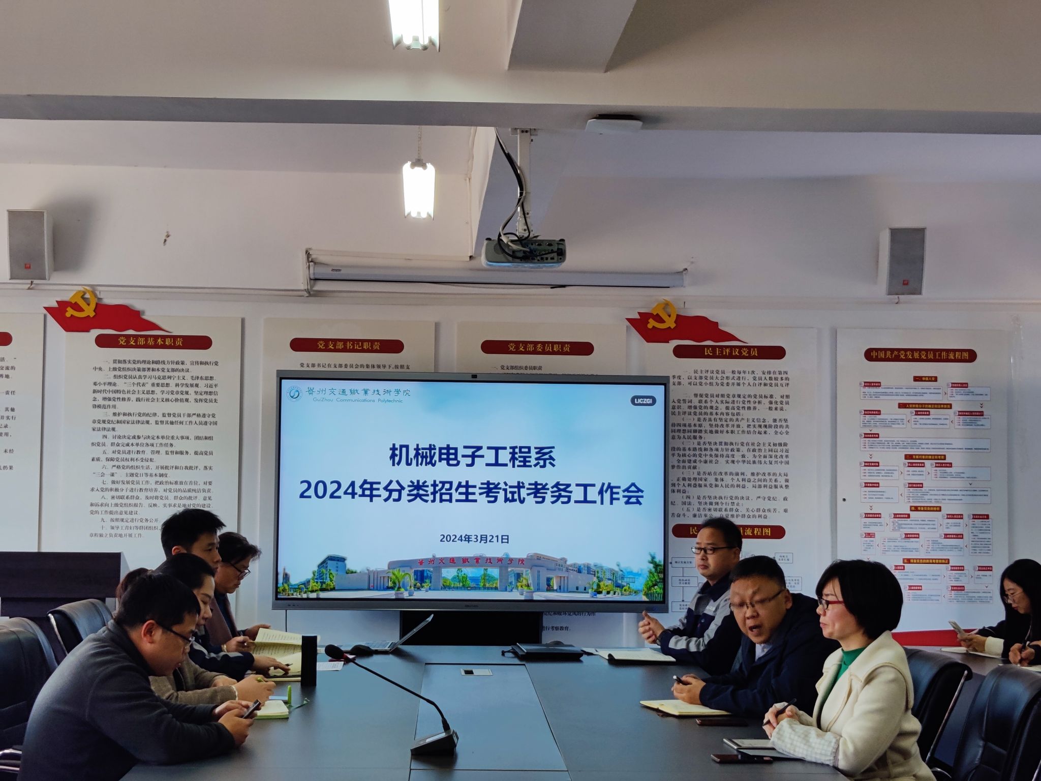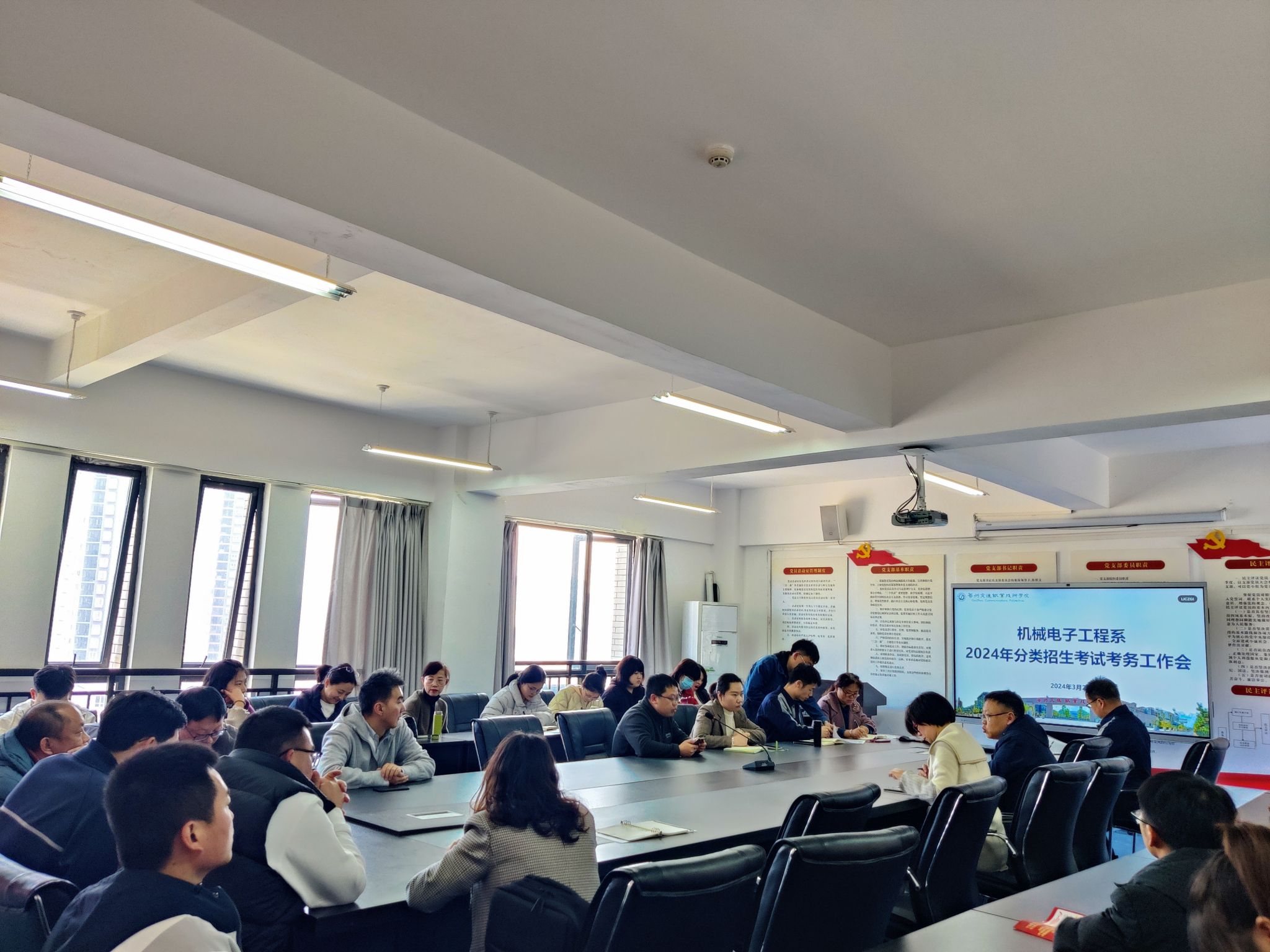 3月21日,机械电子工程系在党员活动室召开2024年分类招生考试考务工作会,全系教师参加工作会。