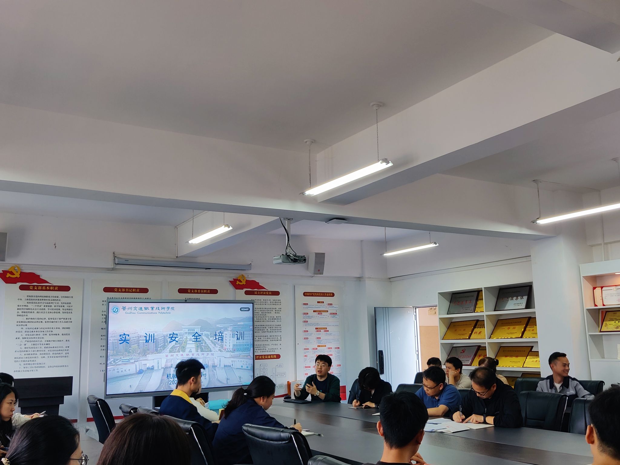 6月7日,系实训办公室主任刘轶在党员活动室开展实训安全培训,全体教师参加。