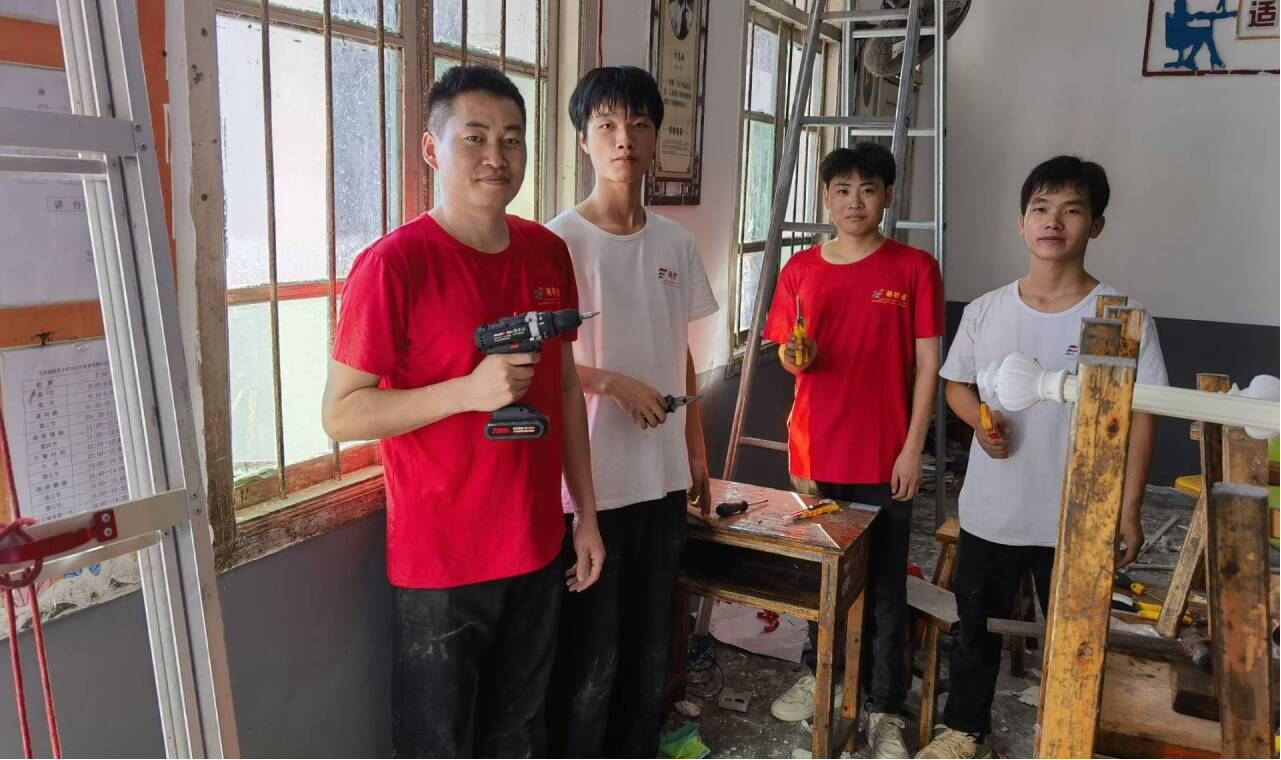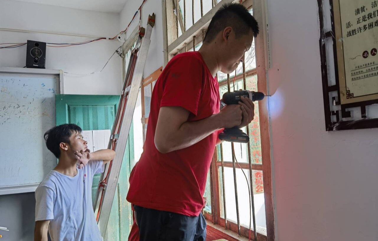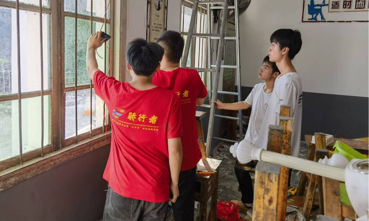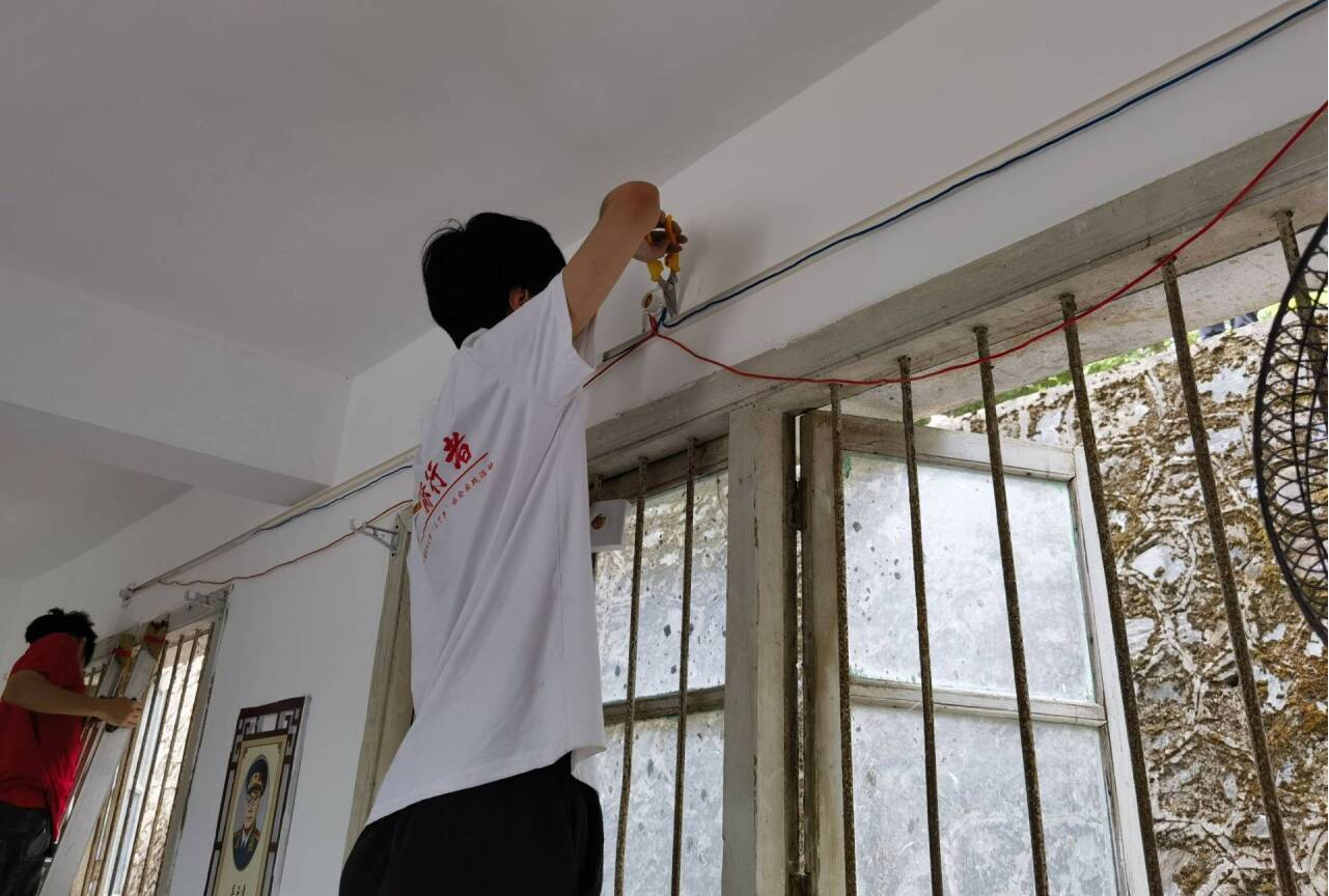 在电工小队的不懈努力下,从江县根里小学已经完成四间教室正常通电用电。在线路改造过程中,他们发现了线路中所存在的故障问题,现场对线路进行故障排除。为了更好帮助根里小学安全用电,电工小队将对剩余几间教室线路进行现场专业改造。