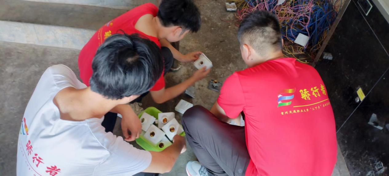 脚步丈量祖国大地,青春流淌志愿汗水。为助力乡村振兴,提升青年修养,7月22日,贵州交通职业大学匠心机电青年志愿者服务队,来到从江县斗里镇根里村开展2024年暑假“三下乡”社会实践活动。7月23日,服务队在从江县根里村同时开展“乡村电路用电安全改造”和“文化墙绘”志愿活动项目。