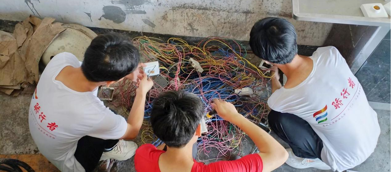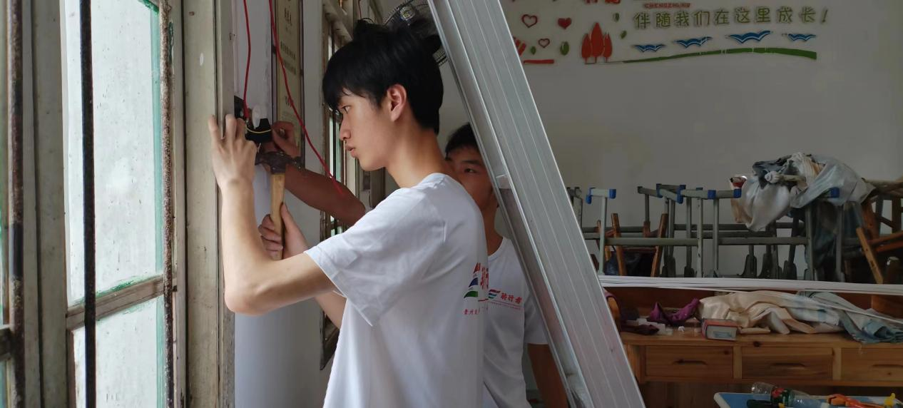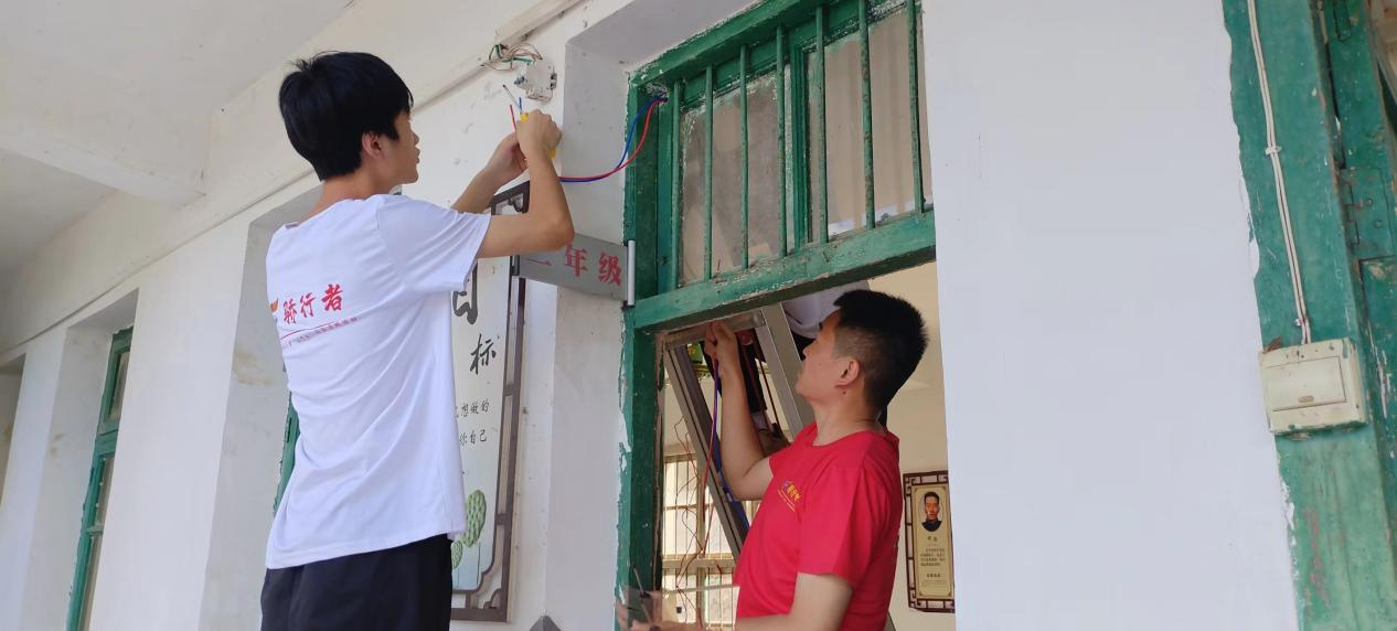 在带队老师的指导下,“乡村电路用电安全改造”团队成员结合自身的专业优势,对正在翻新且还未安装电路的从江县根里小学进行线路接通改造,旨在为根里小学的同学们提供一个更安全的校园环境。