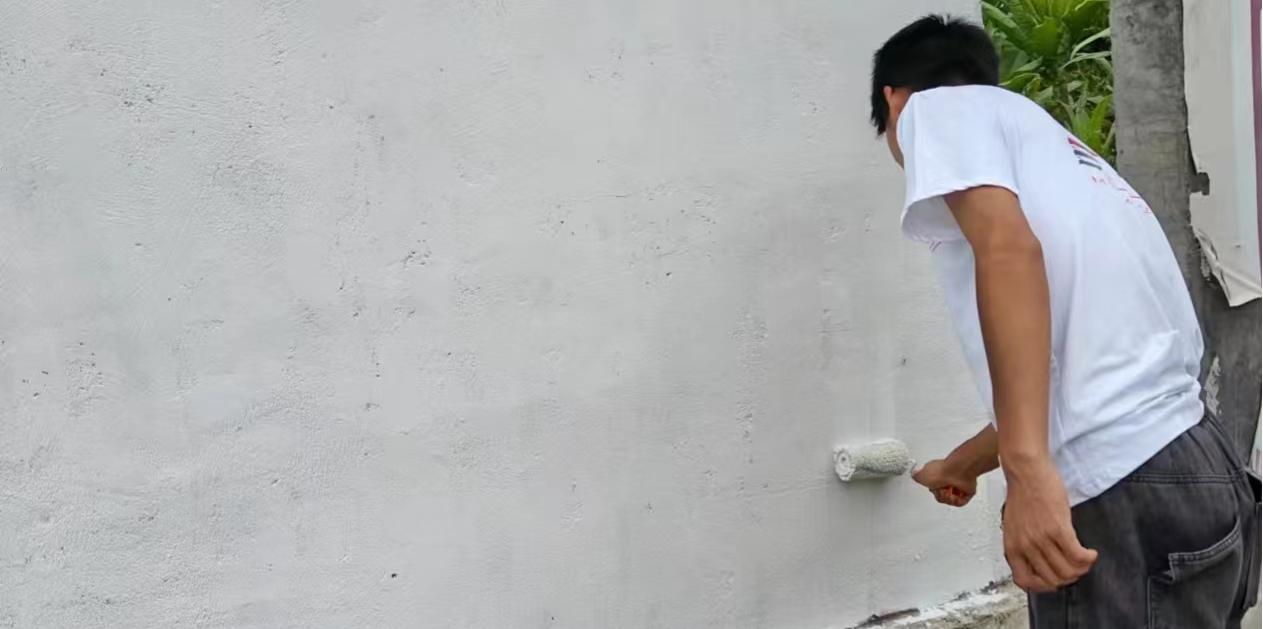“匠心”之笔,绘乡村“画卷”。“文化墙绘”团队成员经过一上午的粉刷,原先粗糙简陋的灰墙染上白漆,墙面变得更加平整光滑,为未来几天墙绘工作的持续开展打下坚实基础。