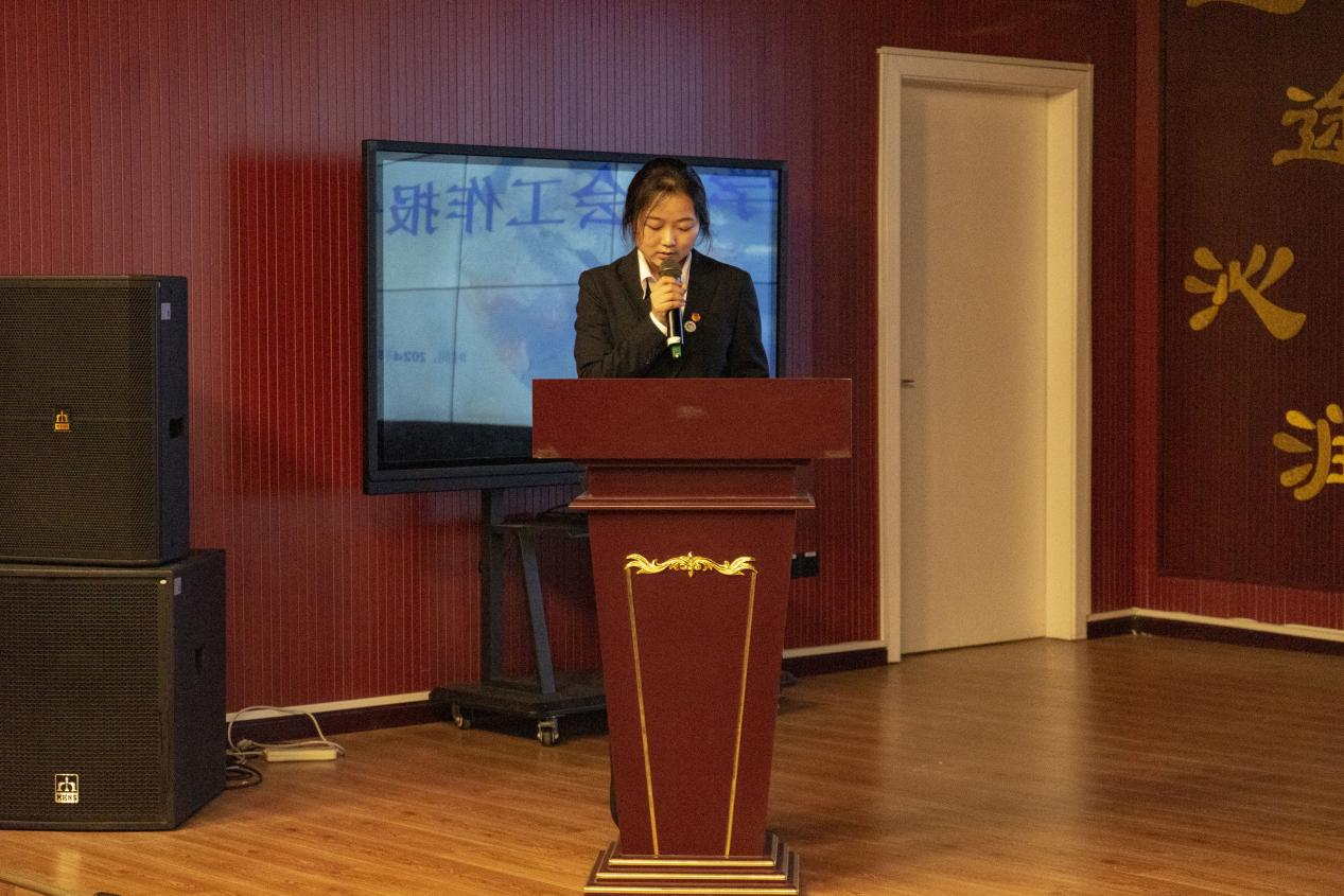 按照大会流程,第五届团总支副书记陈贺林、第十四届学生会主席杨丽芳首先上台作工作汇报,总结过去一年我系团学工作的开展情况,并对新一届团总支、学生会的工作提出了一些建议和期望。