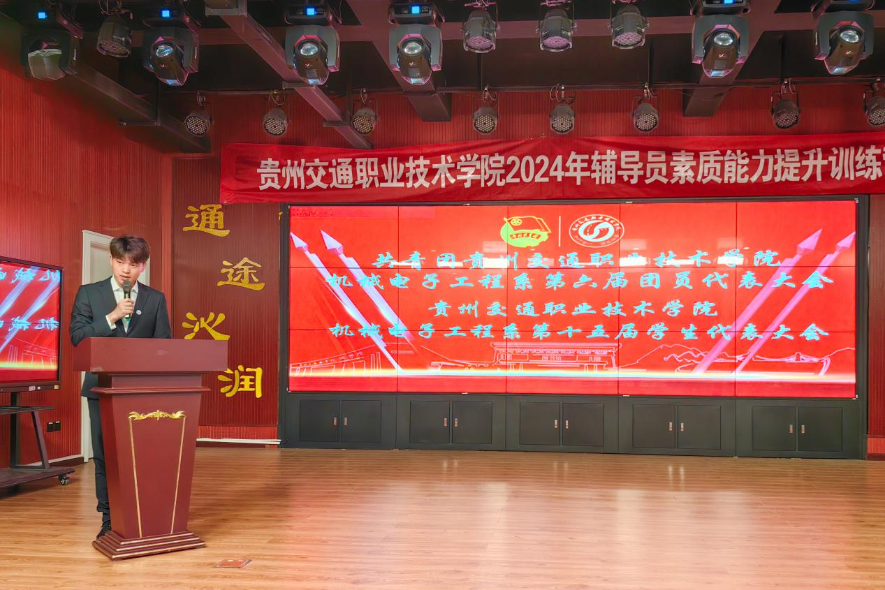 2024年5月27日,“共青团贵州交通职业技术学院机械电子工程系第六次团员代表大会暨贵州交通职业技术学院机械电子工程系第十五次学生代表大会”在学生素质中心顺利召开,机电系团总支书记周英菊,广东交通职业技术学院海事学院团委书记杨浩政,学生会指导老师何凯,辅导员任露及各班级推选的团员代表、学生代表参加了此次两代会。