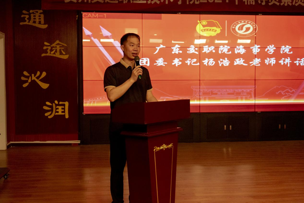 会议最后,广东交通职业技术学院海事学院团委书记杨浩政老师以“你是否明白党和国家期待我们培养什么样的学生干部?”“你是否能突破思维定势,积极用创新的方式方法简化工作,提高工作效率?”“是否做到朋辈引航,共进成长、理实一体,知行合一”三个问题对新一届的团学干部提出了要求,希望新一届学生干部们可以一代更胜一代,敢于挑战,不断创新,在未来的工作中继续为团学争光添彩。