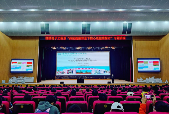 2022年11月29日,机械电子工程系组织全系在校学生在礼堂举行心理健康教育专题讲座,学院学生心理健康教育指导中心张和明老师与同学们展开了一场“持续疫情背景下的心理健康探讨”专题分享。