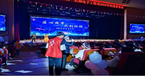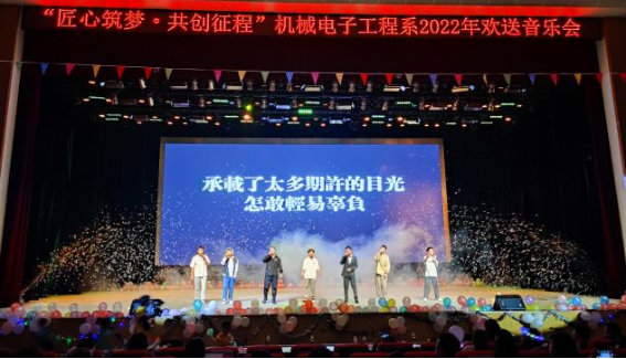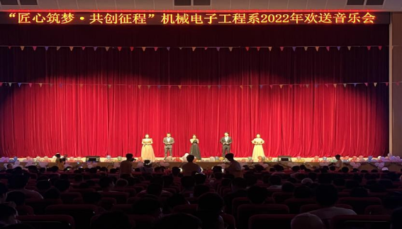 2022年6月19日,机械电子工程系在大礼堂举办“匠心筑梦·共创征程”2022年欢送音乐会,系党总支副书记于建委、副主任彭爱泉、全体辅导员、2020-2021年级学生参加音乐会。