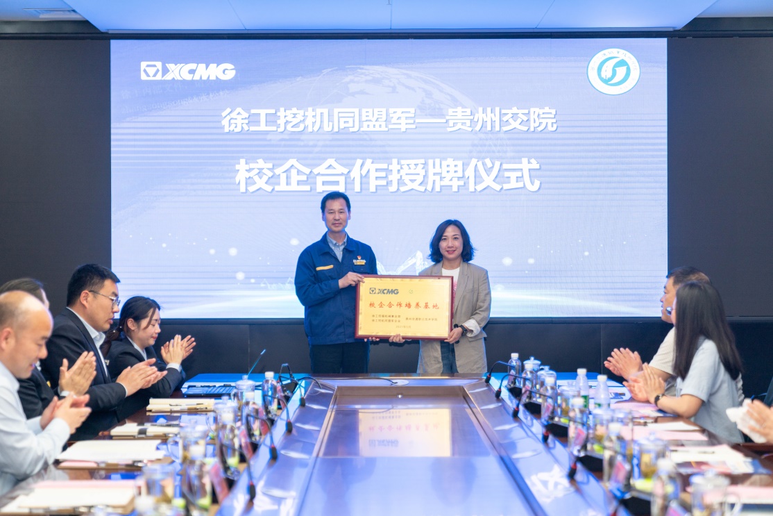 最后,校企双方进行了合作授牌仪式,徐工挖掘机械有限公司于爱军书记为我校授牌。
