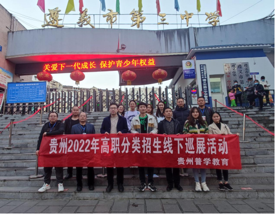 2022年3月7日至3月11日,机械电子工程系招生与就业负责人刘鹏,参加学院招生宣传代表团,和贵州普学教育机构一同来到遵义市第三中学、第十七中学、第二十一中学、鸭溪中学、仁怀市第四中学、育英实验学校等校进行2022年“分类招生”招生宣传工作。