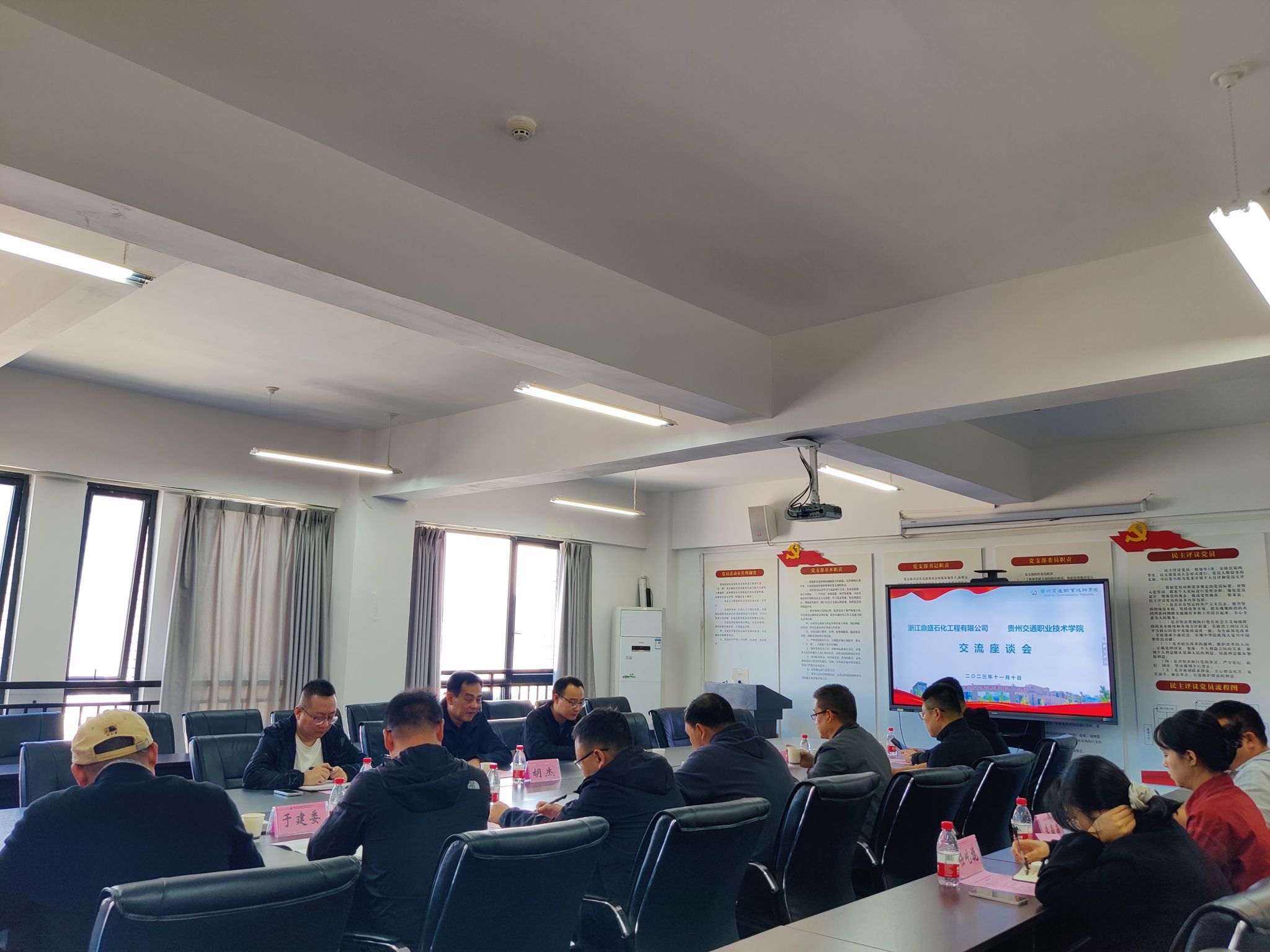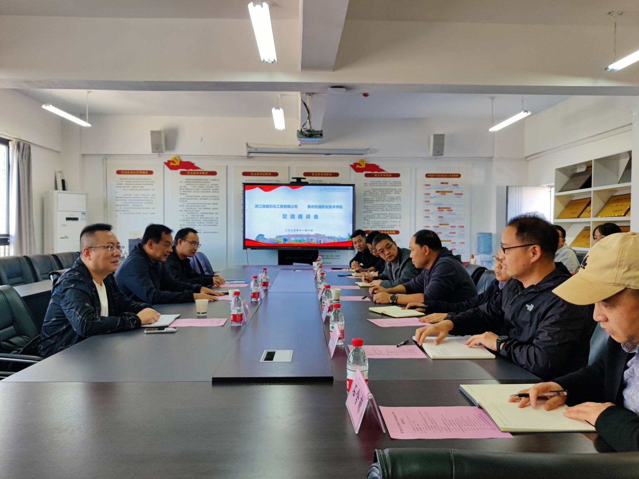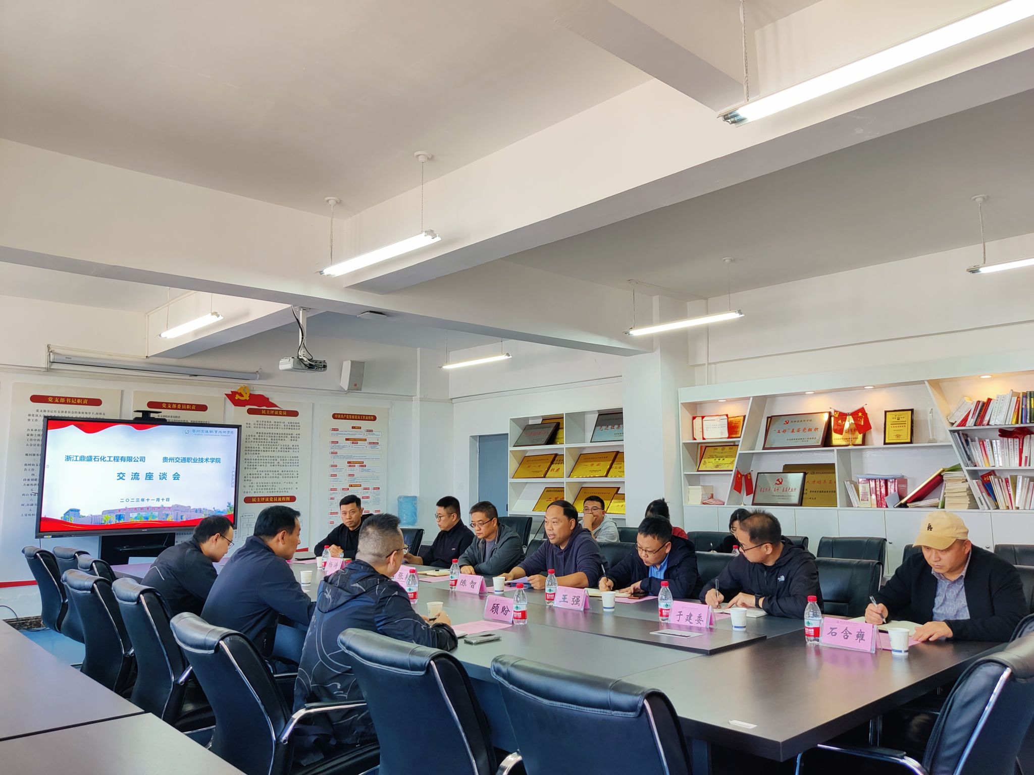 11月10日,浙江鼎盛石化工程有限公司党支部书记、副总经理、工会主席胡杰、综合管理部副经理龚烨和顾玢来到贵州交通职业技术学院,在T9-B514会议室展开校企合作交流座谈,学院招生就业指导中心副主任陈智,轨道交通工程系党总支书记张耘、主任杨涛,机械电子工程系主任王强、党总支副书记于建委,汽车工程系副主任向巍以及各系招生就业专项工作负责人参加座谈会。