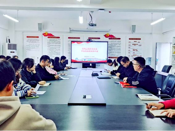 2022年11月14日,机电工程系党总支学生党支部组织全体党员在党员活动室召开党员大会,开展政治理论学习,讨论陈继涌、杨美、石杨普浩等3名同志的转正申请,支部书记何凯主持。