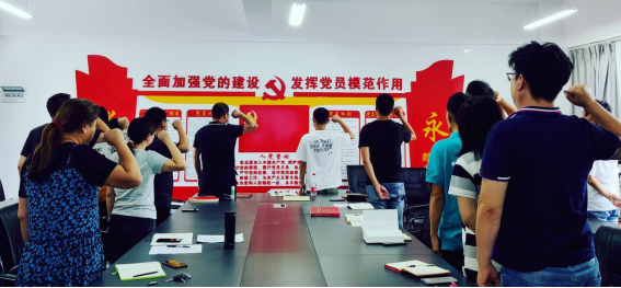 最后,由于建委领誓,全体党员面向党徽重温入党誓词,本次政治理论学习也在“我志愿加入中国共产党......”声中结束。