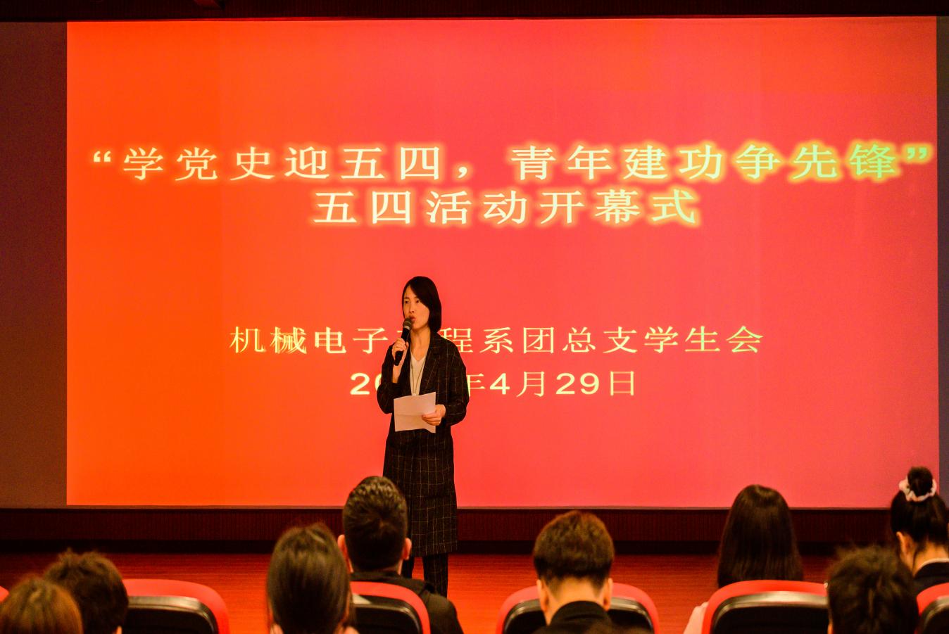 2021年4月29日,由机械电子工程系学生党支部和团总支主办的庆祝中国共产党成立100周年“学党史迎五四,青年建功争先锋”五四系列活动在学院学生素质发展中心开幕。出席本次开幕式的有机械电子工程系团总支书记周英菊,学生会指导老师何凯,辅导员任露,全体团学干部,入党积极分子和各班级学生代表。