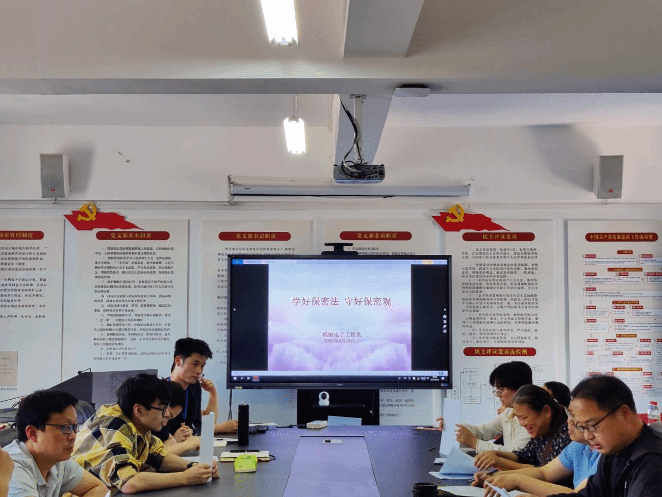 4月19日,机械电子工程系党总支组织全系党员在党员活动室召开学习贯彻习近平新时代中国特色社会主义思想主题教育工作会议,系党总支副书记于建委主持。
