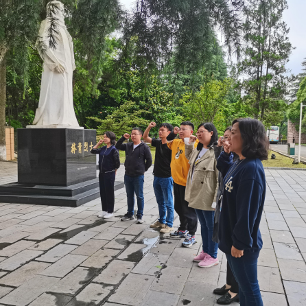 大家来到贵阳市社会主义学院内林青烈士纪念碑前,思政教师何凌给党员们介绍了林青的革命事迹,党总支副书记王昕带领大家重温入党誓词。随后党员们在森林公园图云关参观了中山园和国际援华医疗纪念碑,并通过观看展版了解贵州抗战时期的历史。