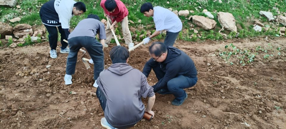 6月5日,机械电子工程系新一届团总支、学生会学生干部在系党总支副书记于建委的带领下,在沁园劳动基地,开展“劳动铸魂”实践活动。