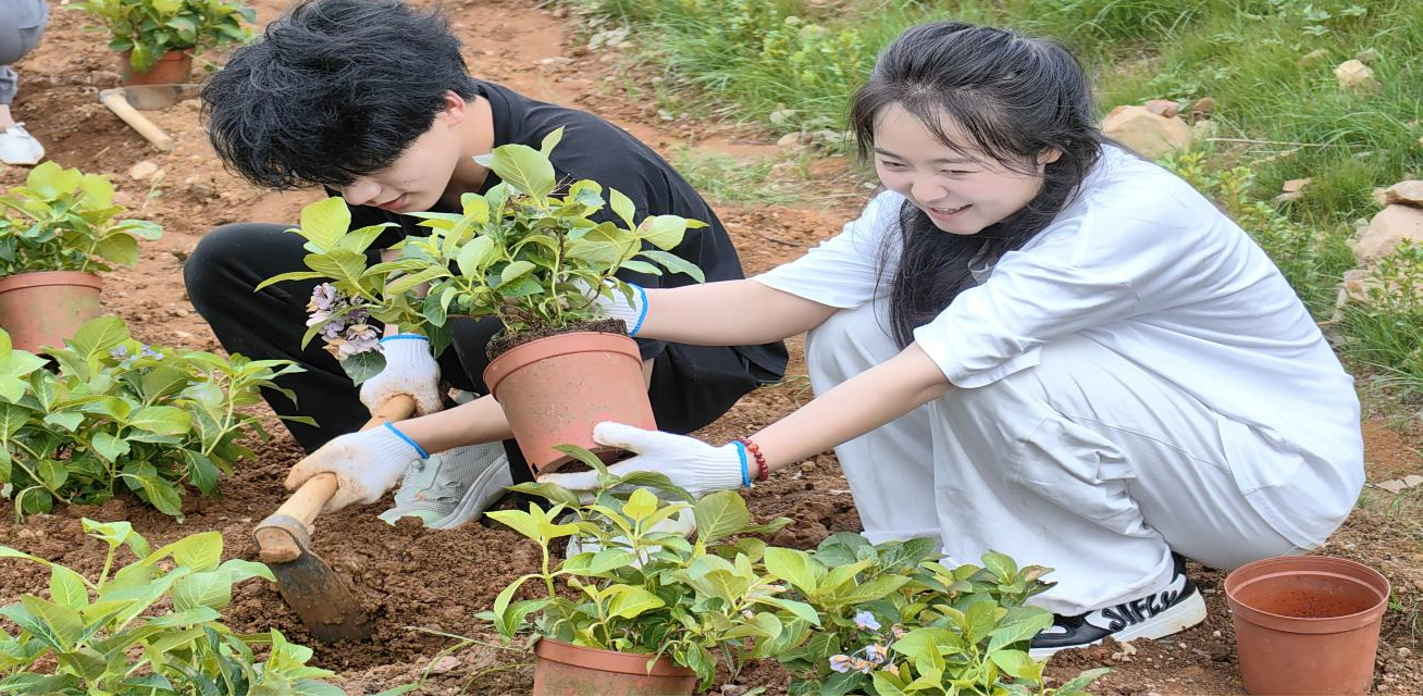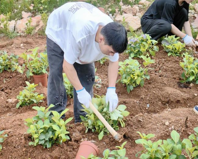 最后,在大家的共同努力下,数百株绣球花花苗完成种植。