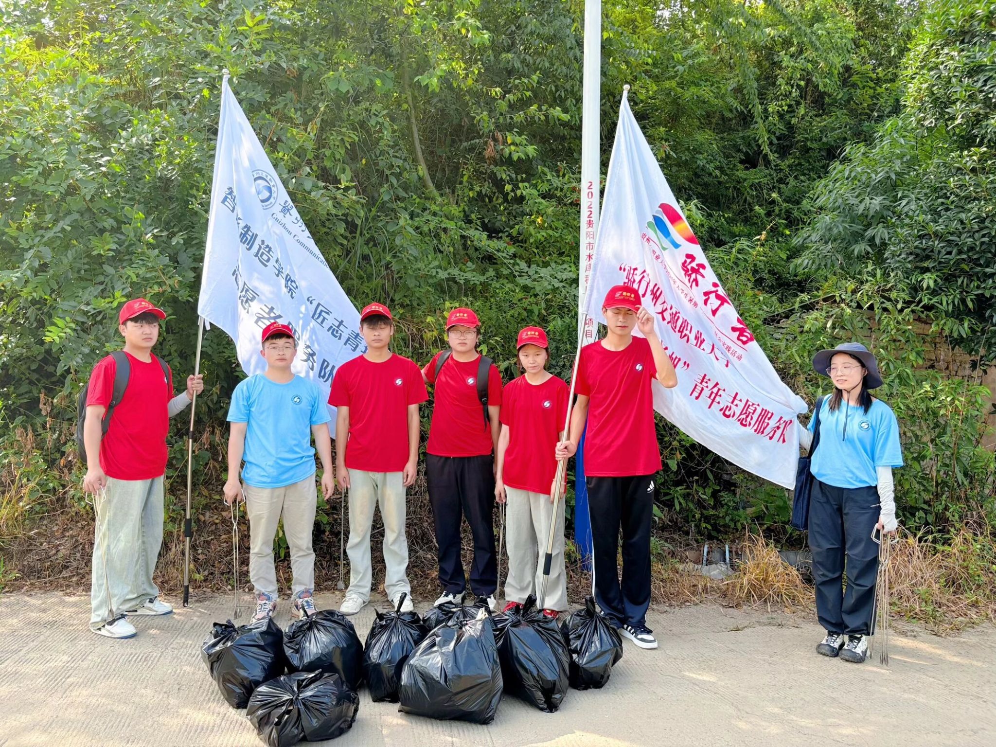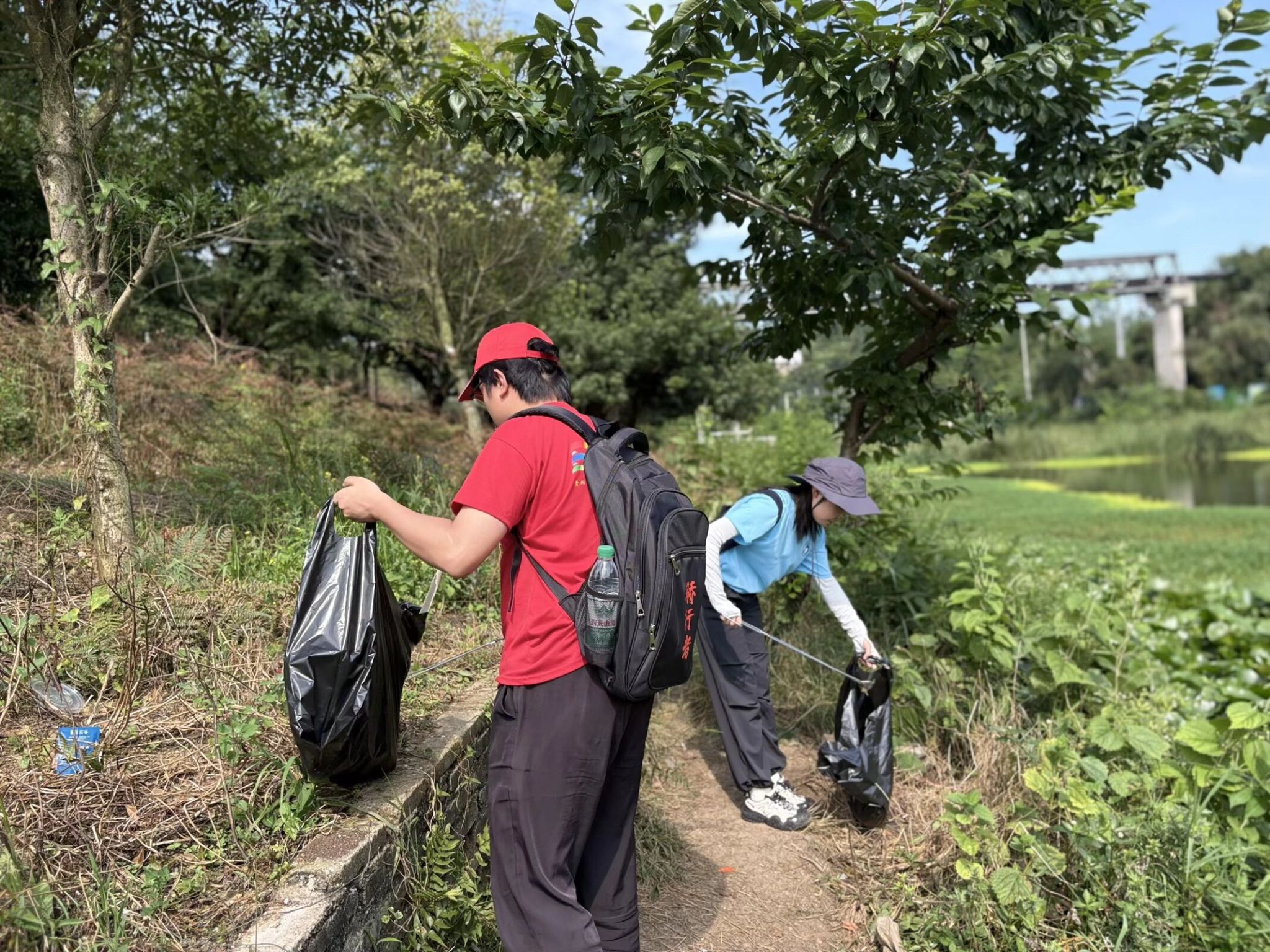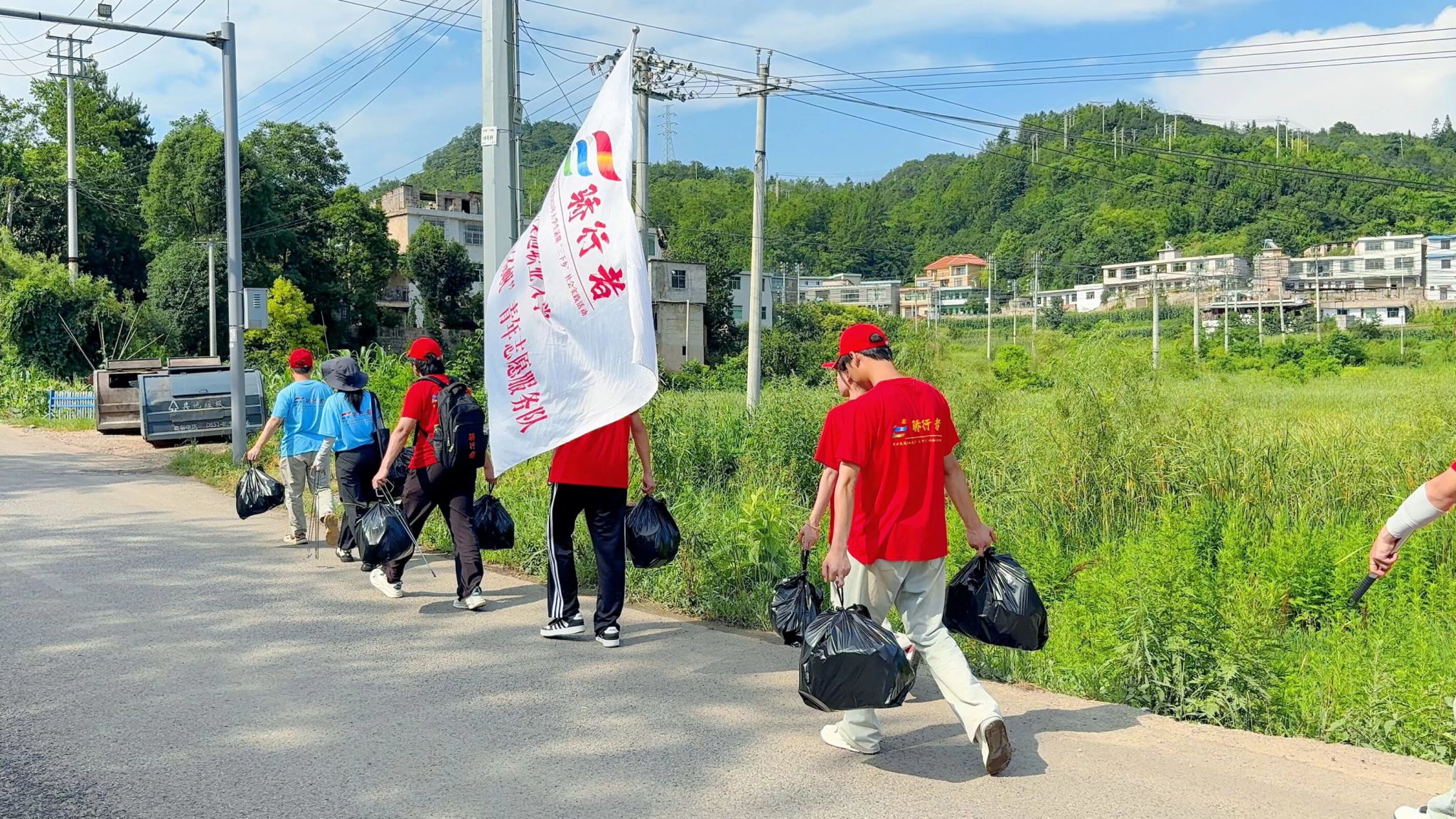 “匠志青年”扬帆小队来到青山村下辖高家河开展乡村清洁行动,清洁河边及沿河村道上的垃圾,还河流一份整洁。
